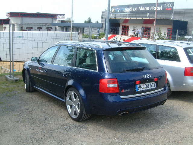 What the Lamborghini Murciélago is to adolescent boys and those seeking the essence of exoticar sex appeal, the Audi RS6 is to bankers, lawyers and those seeking the quintessential stealth appeal of a world beater Q-ship. Prior to Audi's purchase of Automobili Lamborghini SpA, seldom did one make mention of the two marques in the same sentence. While the RS6's 450 bhp, twin turbo, 4.2 liter, V8 mill falls short of the bad boy Lambo's motor, it certainly holds it's own against a bevy of other sports cars. A quick scan of a recent Road & Track Road Test Summary and one discovers that the RS6 motor bests a large number of other manufacturers' sporting models: Aston Martin DB7 Vantage, Bentley Arnage Red Label, BMW's M5 and Z8, Corvette Z06, Ferrari 360 and 456, Jaguar's R models, Lotus Esprit V8, Mercedes-Benz's C32 AMG, CLK55 AMG, E55, SLK32 AMG, S55 AMG, and Porsche's base model 911 Turbo. Conversely, only a handful of U.S. street legal super cars outdo the RS6 from an absolute horsepower output standpoint: Dodge Viper GTS-R, Ferrari 575M, the aforementioned Lamborghini, Porsche 911 GT2 turbo, and the Ruf R Turbo. This is not to imply that the RS6 outperforms these other cars in the classical sense, just a data point in the ever escalating horsepower wars.